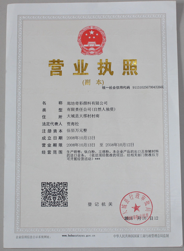 備案號(hào):冀ICP備08000328號(hào)-7 版權(quán)所有:廊坊奇彩顏料有限公司 電話:0316-2834666 地址:河北省廊坊市大城縣里坦工業(yè)園區(qū) |